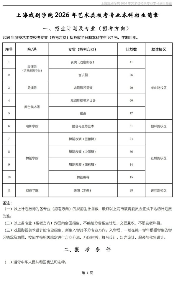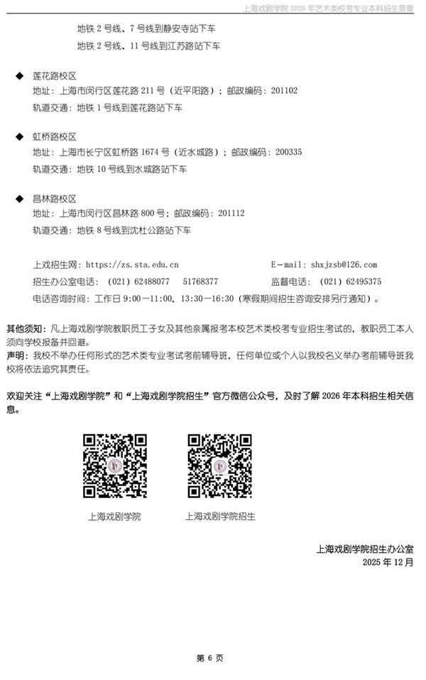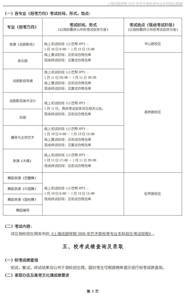 上海戏剧学院发布2026年艺术类校考专业本科招生简章及线上考试平台操作指南。明确: