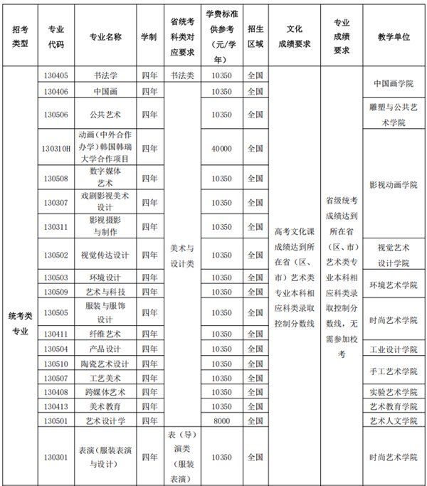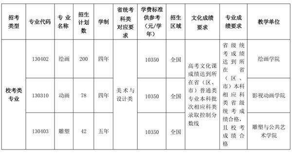 注:1.校考类专业面向全国招生,不做分省计划,按校考专业成绩全国统一排名。