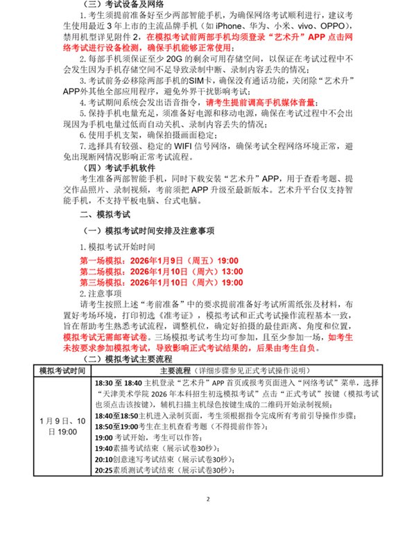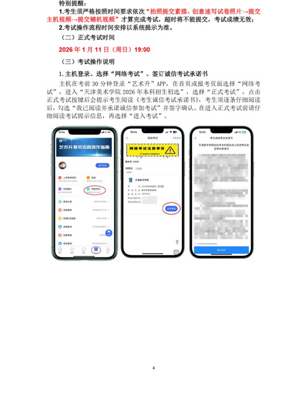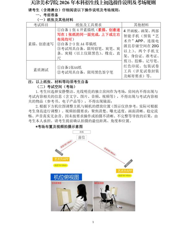 天津美术学院2026年本科招生线上初选操作说明及考场规则
