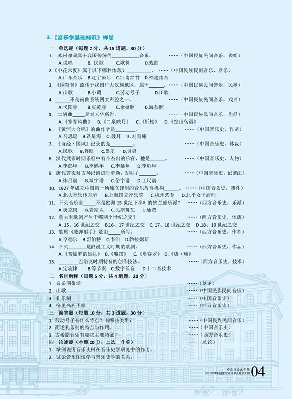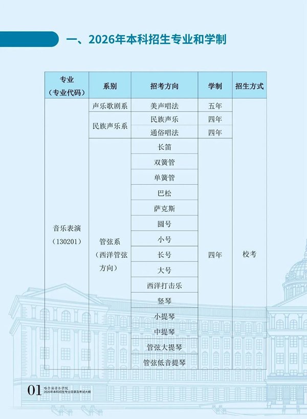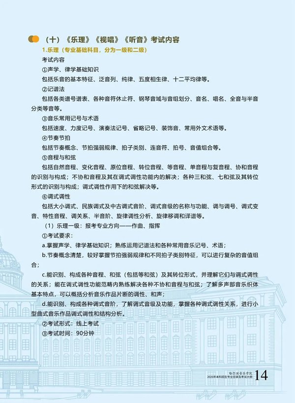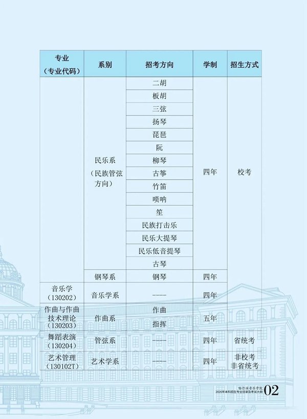 哈尔滨音乐学院2026本科招生专业目录及校考专业考试大纲公布