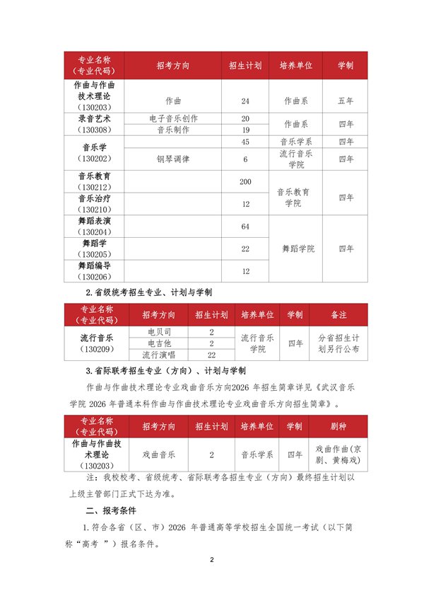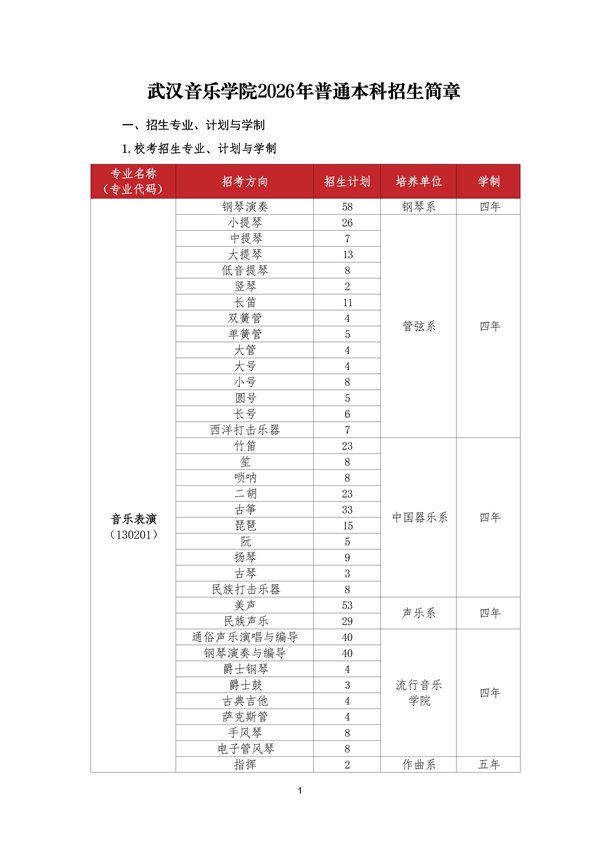 武汉音乐学院2026年普通本科招生简章发布