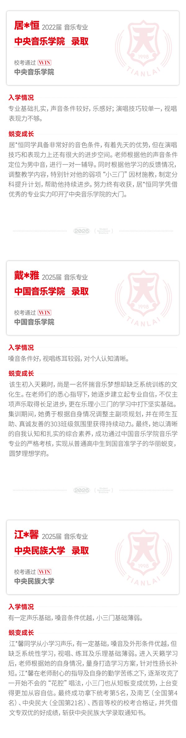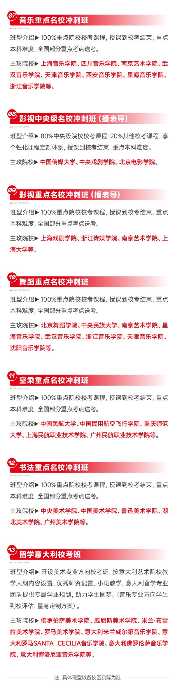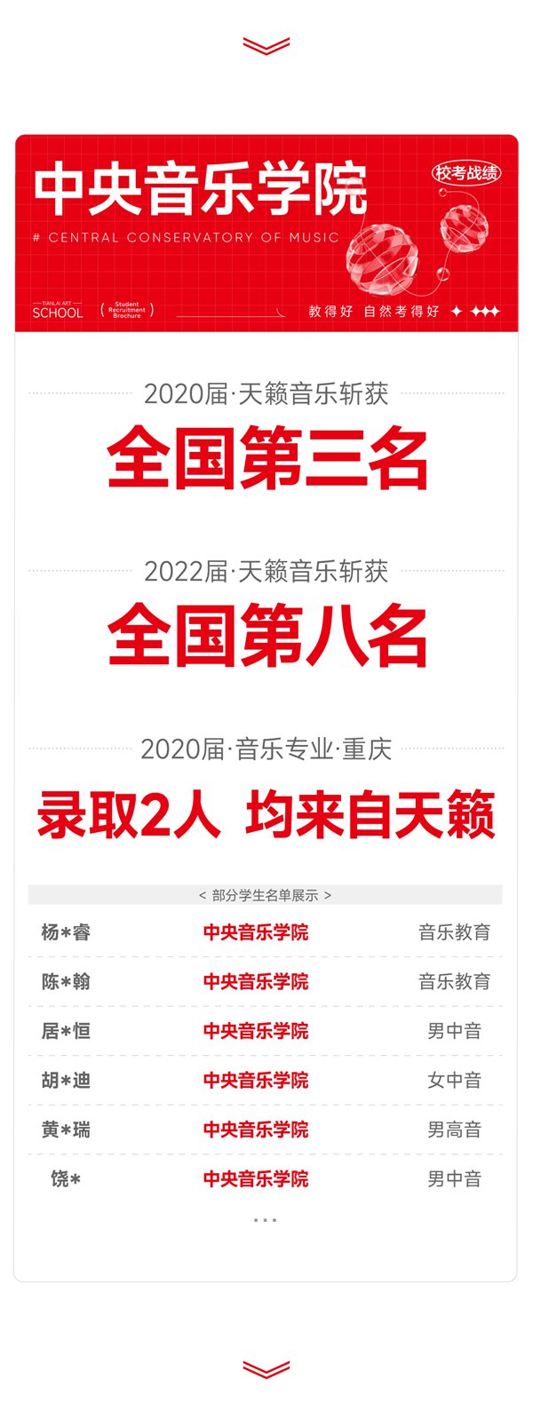 - 八中树人中学遵义艺术中学郑州华尔中学洛阳格致中学天籁艺术学校(高中部)重庆巴南育才实验中学重庆风景园林学校项城市尚文天籁艺术高中